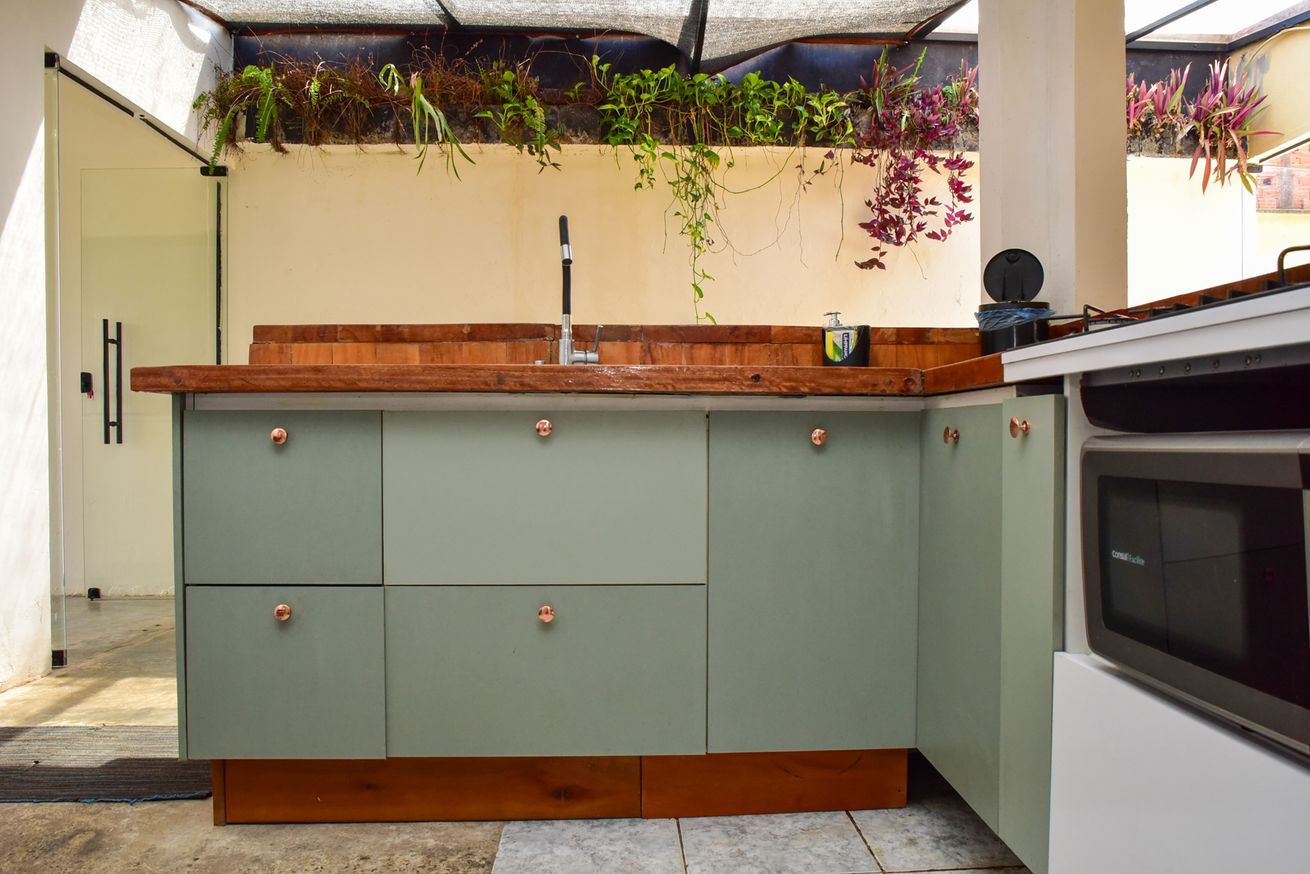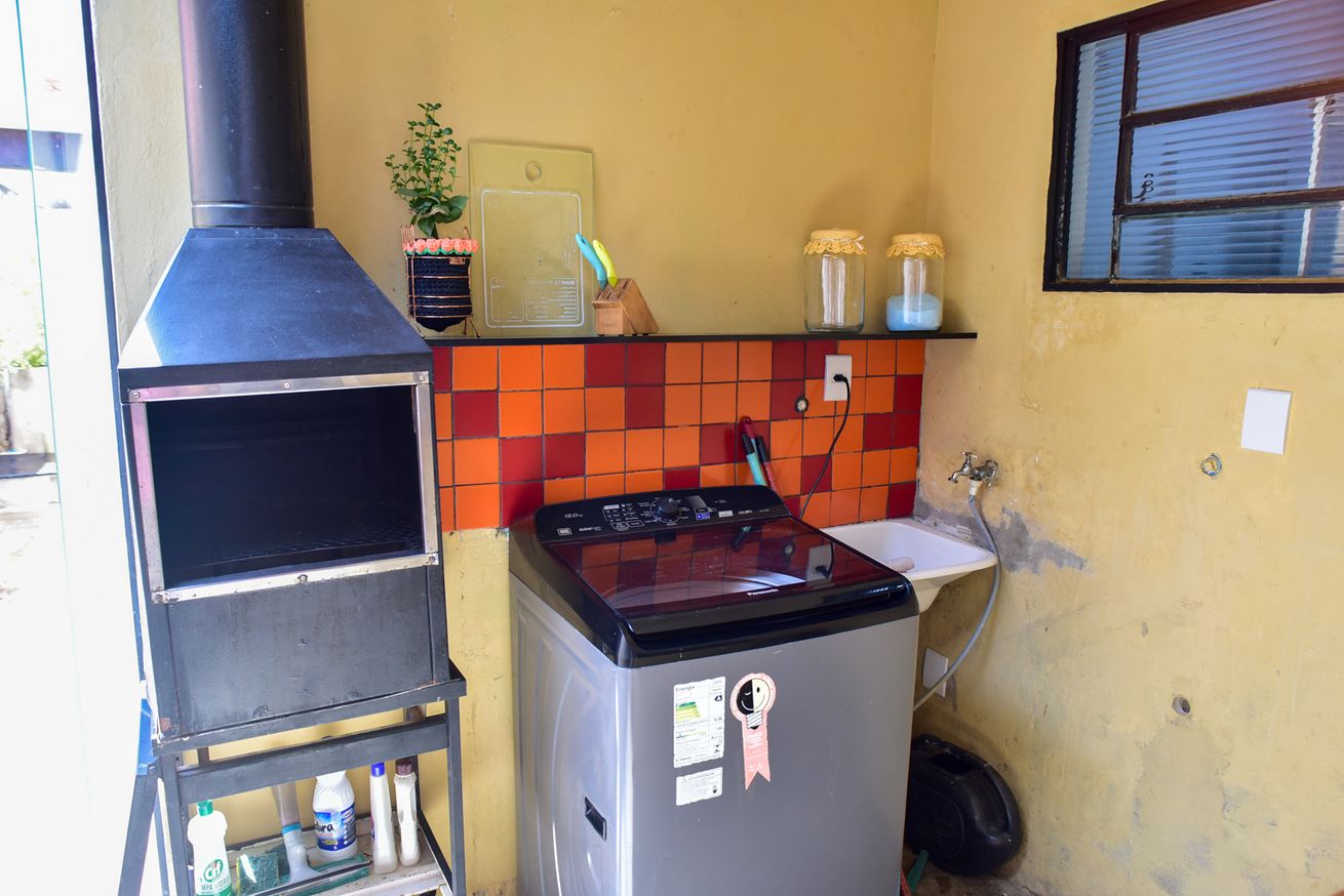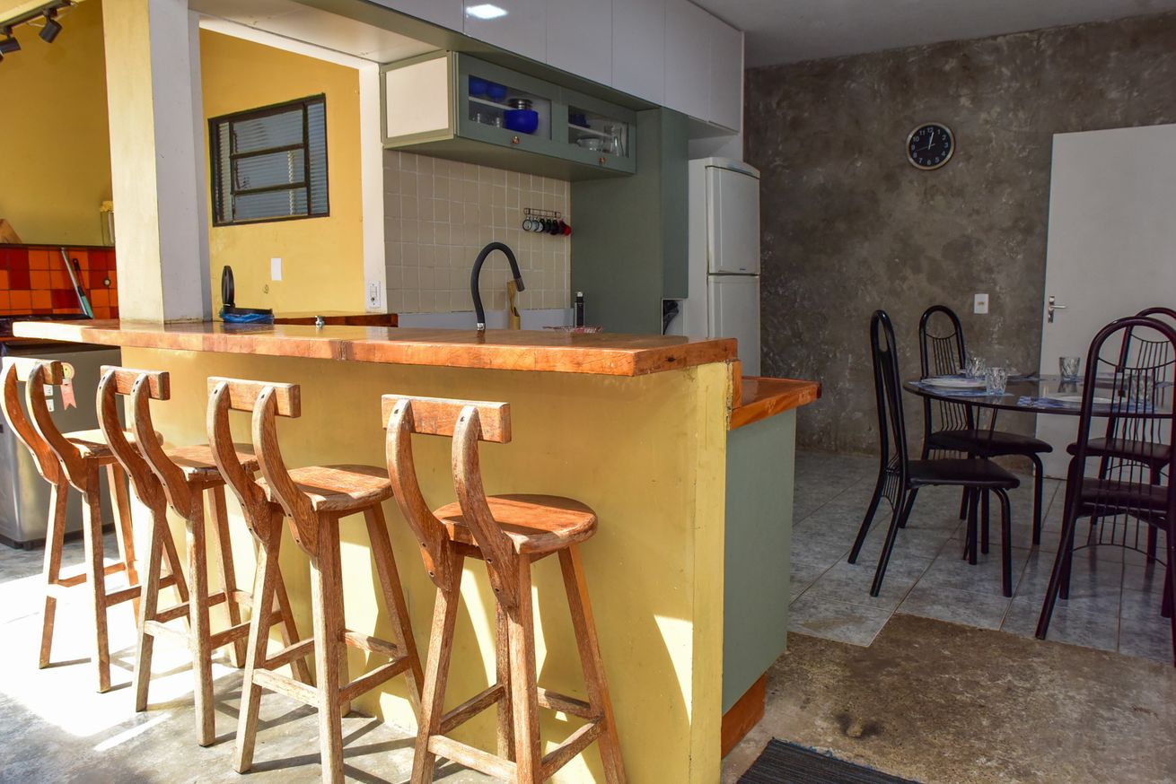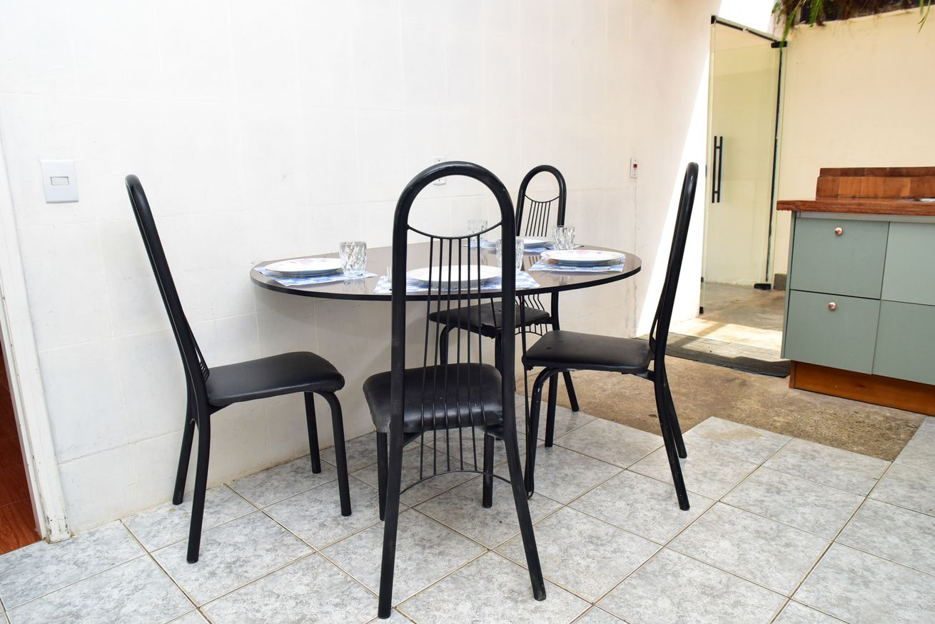 - Cozinha com fogão cooktop 5 bocas, fogão, geladeira, freezer, micro ondas, fritadeira, liquidificador, purificador de água, utensílios completos(exceto óleo e sal), balcão e mesa de jantar com 4 cadeiras