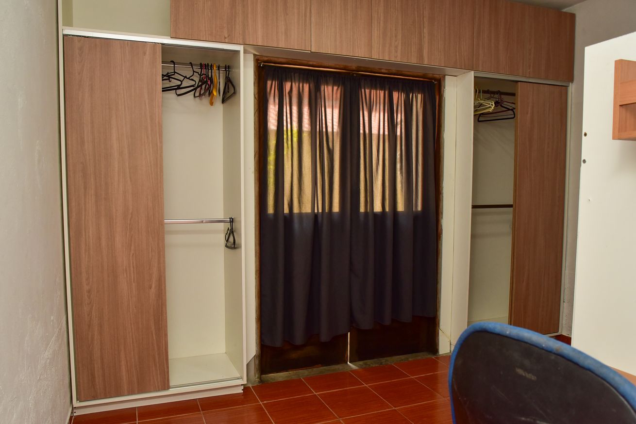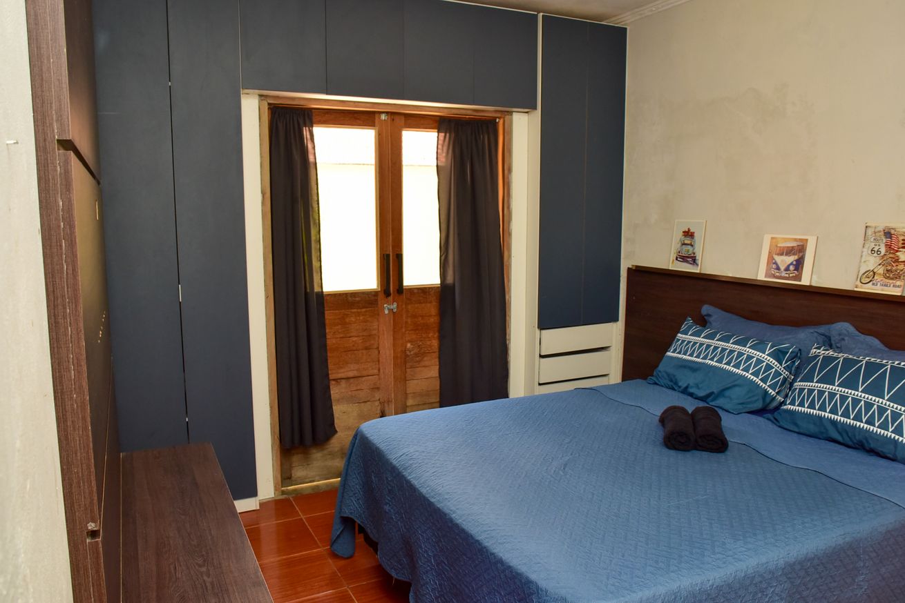 - Quarto 2: Cama de casal, armário, protetor de colchão, ventilador de teto e porta balcão para o corredor