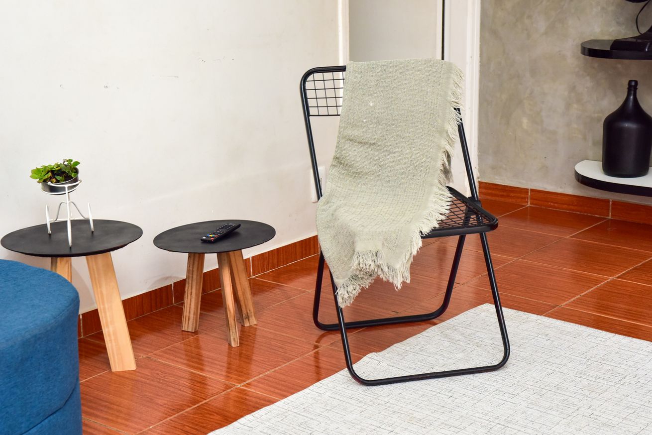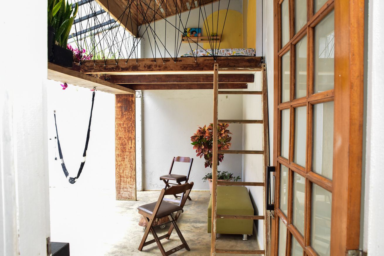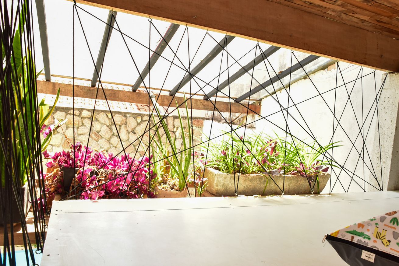 - Área extra: Mezanino externo com lareira ecológica e possibilidade de acomodação adicional com 2 colchões extras