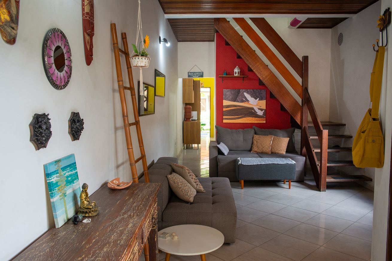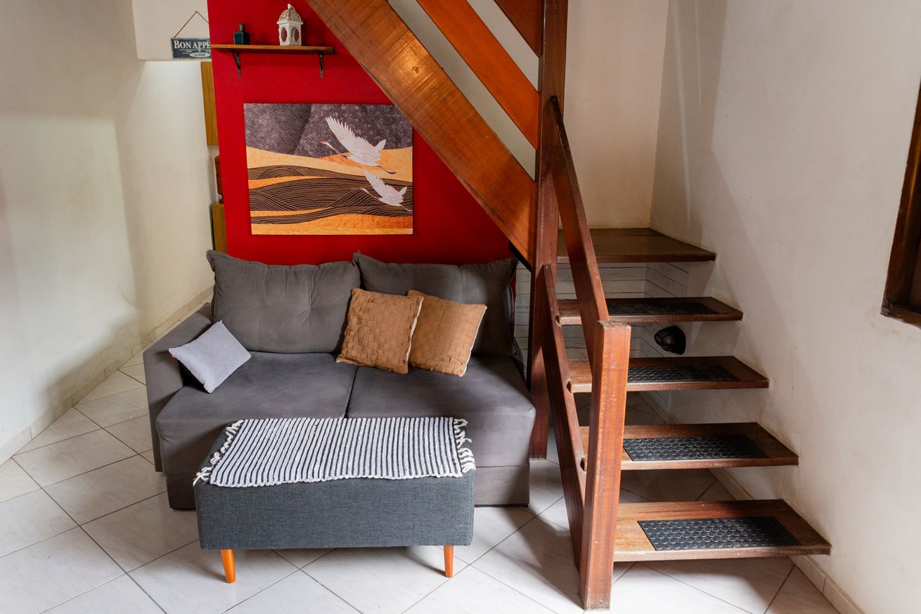 - Acesso aos quartos por escada íngreme