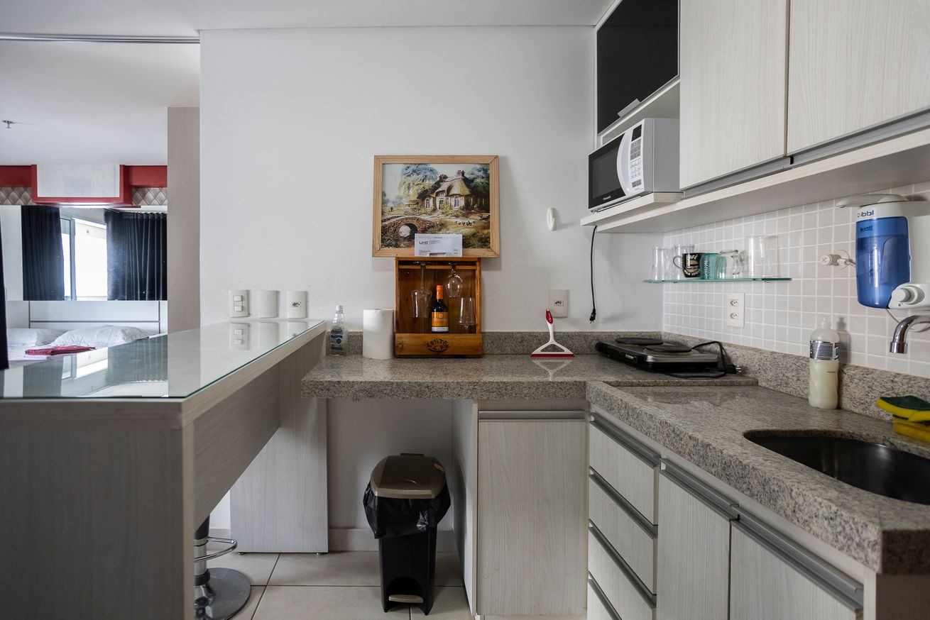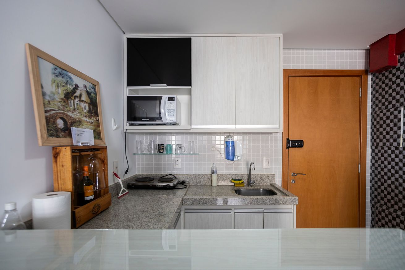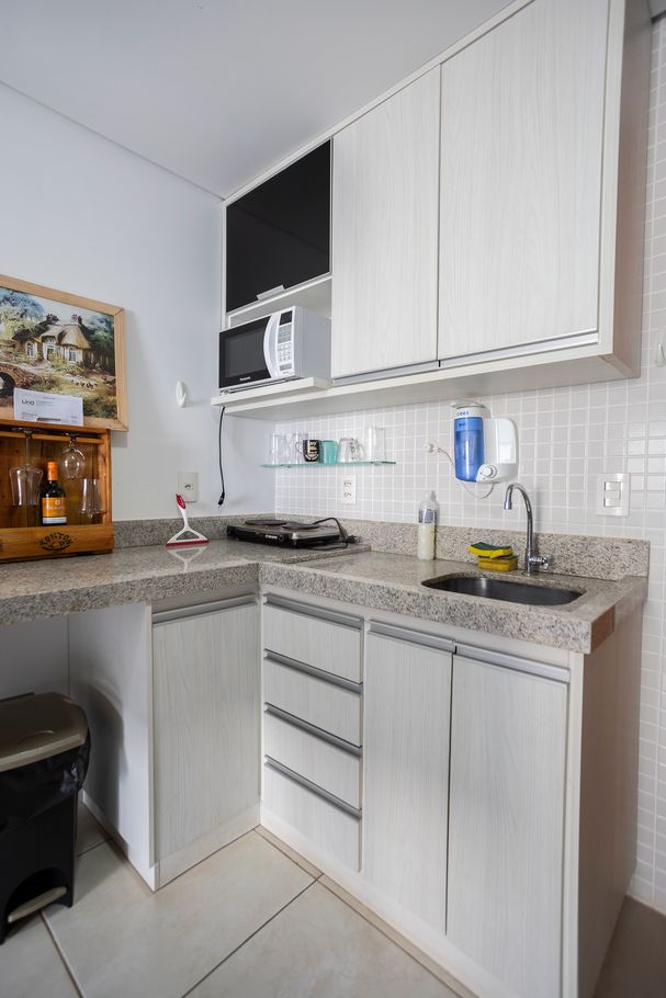- Cozinha equipada com frigobar, micro-ondas, utensílios básicos e itens de cozinha(exceto óleo e sal)